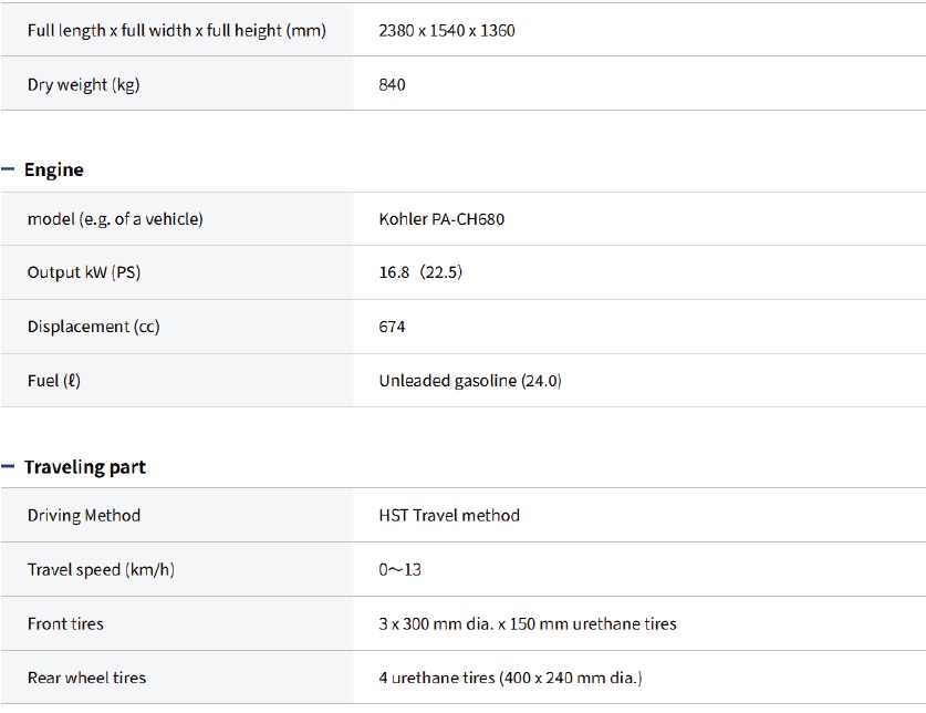The small, green-focused design features a small, easy to maneuver three-wheeled vehicle. Front-wheel urethane triple tires (wide width type) and rear-wheel wide urethane tires (double width type) are standard equipment, taking into consideration damage to greens.