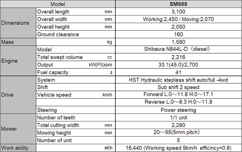 Experience superior performance with the Shibaura SM888 Rotary Fairway Mower, designed with enhanced climbing power and driving efficiency through the innovative “SMD” drive system, utilizing Shibaura’s renowned tractor technology. This cutting-edge device successfully lowers the risk of oil leaks while also lowering maintenance expenses. The SM888, which is built to the highest standards in Japan and has SHIBAURA’s proprietary diesel engine, provides unmatched dependability and longevity for all of your mowing requirements.